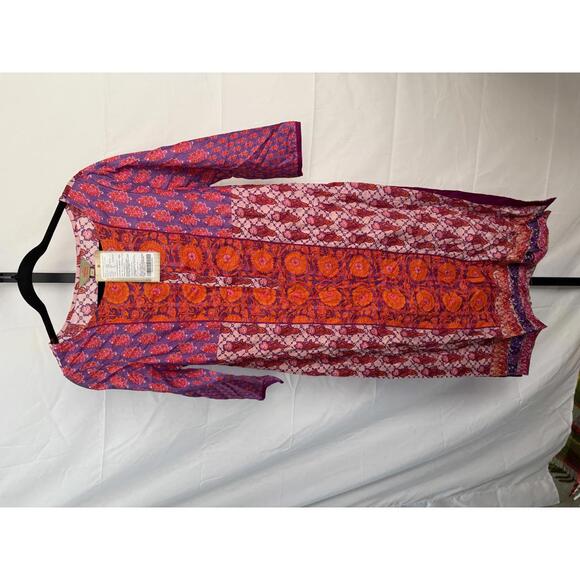This Anouk women's dress features a vibrant floral pattern with a combination of purple, red, and pink colors.