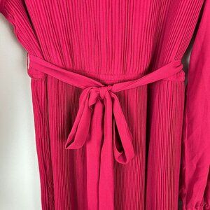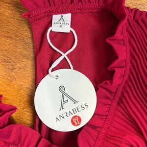 Anrabees Midi Dress XL Maroon Pleated Long Puff Sleeve Ruffle A-line Chiffon NEW