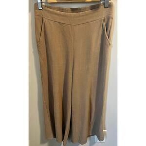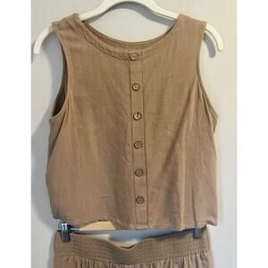 Anrabess 2 Piece Set Tank Crop Button Back Top Cropped Wide Leg Pants Khaki sz S