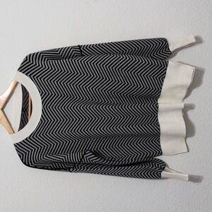Anrabess Chevron Pattern Black and White Oversized Sweater Size Medium Fall Cozy