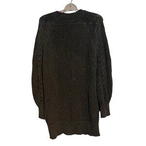 Anrabess Dark Gray Cable Knit Oversized Sweater Tunic XL