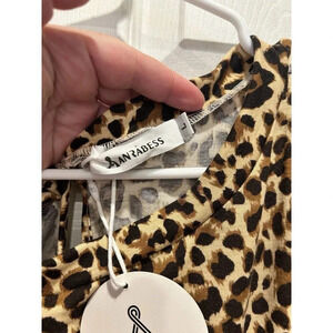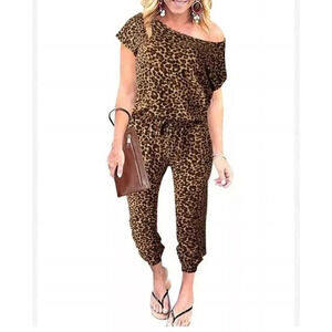 Anrabess Jumpsuit Sleeveless Animal Print Stretch Pockets Drawstring Large NWT