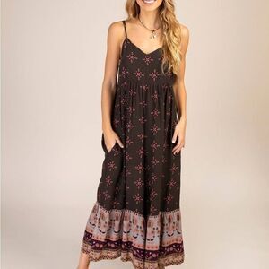 Anrabess LOOSE SPAGHETTI STRAP JUMPSUITS STRETCH WIDE LEG ROMPERS WITH 2 POCKETS