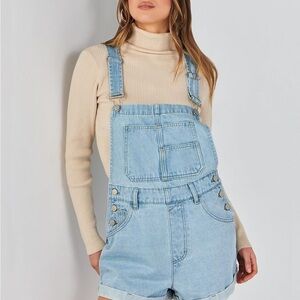 Anrabess Light Blue Denim short loose fit adjustable Overalls NWT