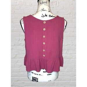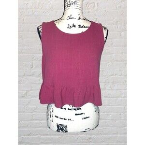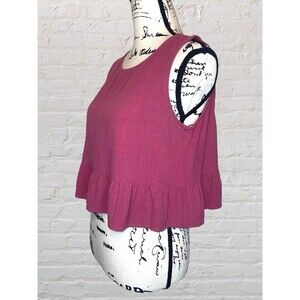 Anrabess Linen Blend Tiered Crop Tank Womens LG Mauve Sleeveless Cottage Coastal