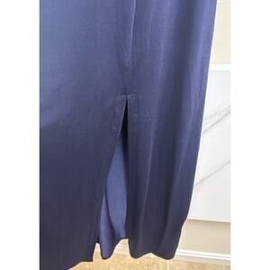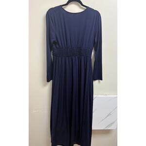 Anrabess Navy Maxi Dress Women’s Large Long Sleeve Deep V Neck Ruched Waist