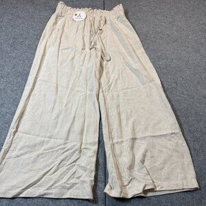 Anrabess Pants Womens Large Beige Rayon Capri Wide Leg High Rise Elastic Waist.