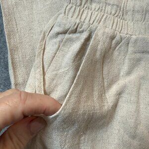 Anrabess Pants Womens Large Beige Rayon Capri Wide Leg High Rise Elastic Waist