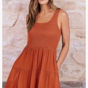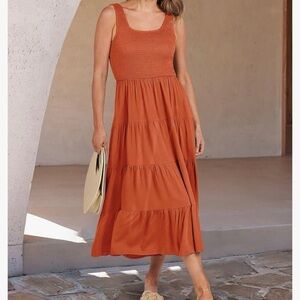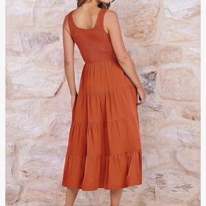 Anrabess Sleeveless Smocked Midi Orange Tiered Scoop Neck Tank Dress XL Pockets