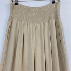 Anrabess Wide Leg Linen Blend Pants Women XL Beige High Waist Comfort Waistband