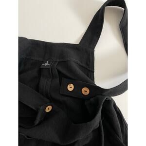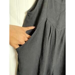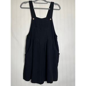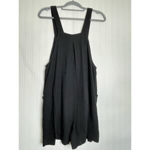 Anrabess Women’s S Linen Romper Overalls Shortalls Loose Black Coastal Lagenlook