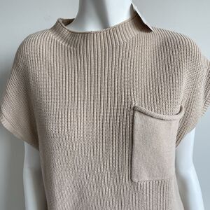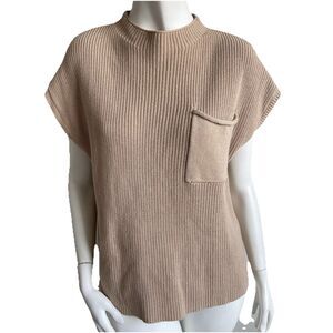 Anrabess Womens Sweater Set Two Piece Knit Boxy Top & High Waist Pants M Tan