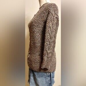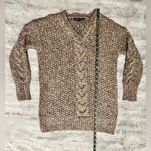 Anrienne Vittadini Tan Speckled V Neck Sweater SZ S