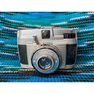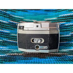 This is a super cool vintage camera full metal body with art deco styling, and fully mechanical. 2 iso.aperture settings settings hazy 50iso/bright 100 iso. zone focusing. lens does look slightly cloudy, mechanically tested and working. But has not been film tested. Shoots 127 film film.