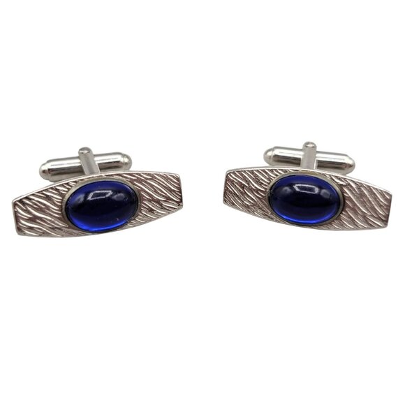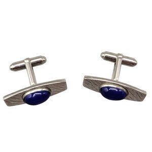 Silver tone with cobalt blue cabochon vintage Anson cufflinks. Marked with an A.