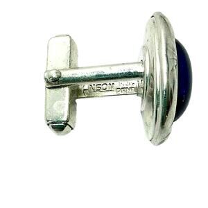Vintage Marked Anson Blue Stone Silvertone Oval Cuff Links
