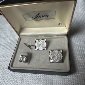 Anson “WH” Engraved Cuff Links and Tie Tack. Silver color in original case.