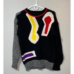 Answers Medium Sweater Retro Vintage 80s 90s Long Sleeve Black Red Gray Shirt
