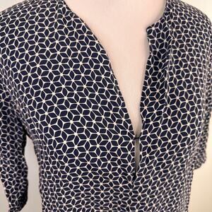 Antazie Silk Keyhole Top Tile Geo Geometric Design Silk Blouse Size P