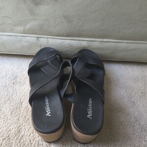 Sleek black straps. Sturdy tan wedge. Perfect for daily comfort.