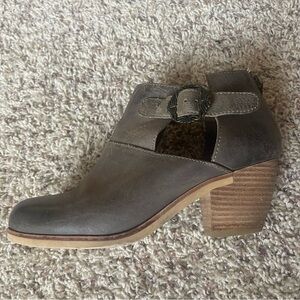 Antelope Brand Taupe Leatherr Cut Out Block Heel Ankle Boots With Buckle Size 38