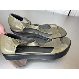 Antelope Green Size 40 EU Leather Slingback Heels US 9.5-10 Sandals