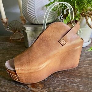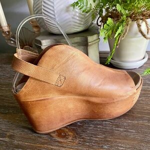 Antelope Leather Slingback Platform Wedges Heel Sandals Shoes Women 37 US 7