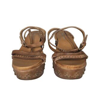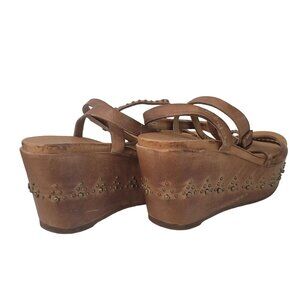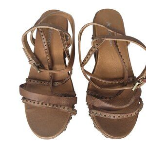 Antelope NWOT Women's Taupe tan Leather Studded Wedge Sandals Size 37 boho strap