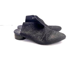 Antelope Radlee heel mule pointed toe women size 10 black excellent preowned condition Beautiful low heel pump by Antelope! Handmade rubber sole. Leather coated latex footbed for added cushion and comfort. F abric is exquisite on this slide in mule. 1” stacked round heel Super comfy.