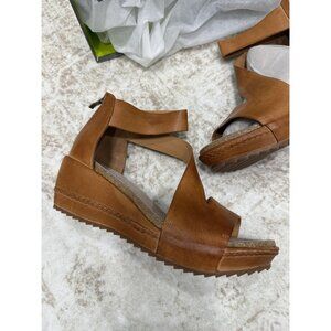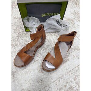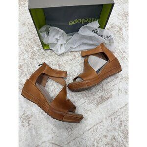 Antelope Shoes Womens Size 9-9.5 Tan Leather Davi Wedge Sandals Back Zip EU 40