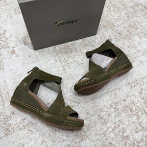 Antelope Shoes Womens Size EU 39 Olive Suede Davi Wedge Platform Sandals Zip