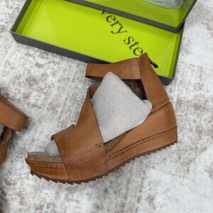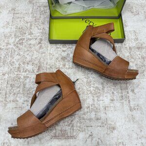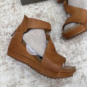 Antelope Wedge Sandals Womens Size 5-5.5 Tan Leather Davi Back Zip Platform D34