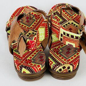 Antelope Women Rey Taupe Leather Flat Sandals US Size 5 Geometric Pattern