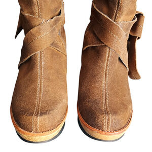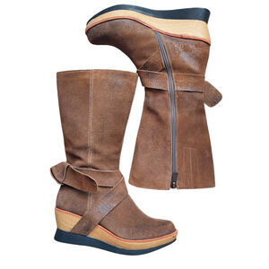 Antelope Women's Brown Taupe Roughout Suede Leather Zip Boots Wood Platform 37