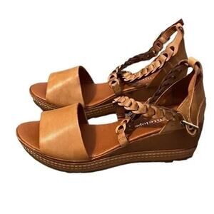 These Antelope Women's Wedge Sandals in size 8 are perfect for all occasions, whether it's travel, casual outings, or workwear. Made of leather with a rubber outsole, these sandals feature scalloped accents and a low heel height for comfort. The brown leather upper is accented with a Gladiator-style toe, making them a stylish choice for summer, fall, and spring seasons. Perfect for adding a touch of Bohemian flair to any outfit, these sandals are a versatile and fashionable addition to any woman's wardrobe.