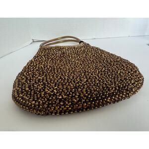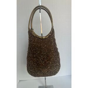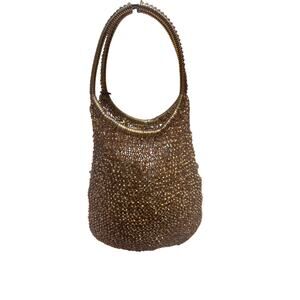 This bag are created by hand and is so unique!! This bag is beautiful in a brown bronze gold "wire" that has edges that are gold…she sparkles!!! She'll fit lots of things, coming in at W10 x H11.5” x D2” and has a 6" drop handle. She has the tag inside and the Anteprima ring with crystals on it.