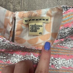 Anthem of the Ants Peach and White Kids Dress With Flutter Sleeves Size 4t