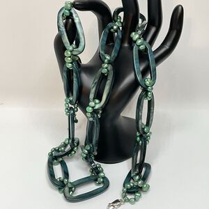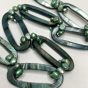 Anthology Rare Vintage Green Mother Of Pearl Shell Chain Necklace Pearls Beaded