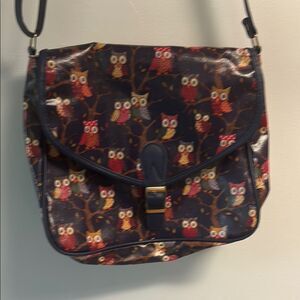 Add a touch of whimsy to your outfit with this delightful owl-patterned crossbody bag. Featuring a vibrant mix of colors, it's perfect for those who love unique accessories.