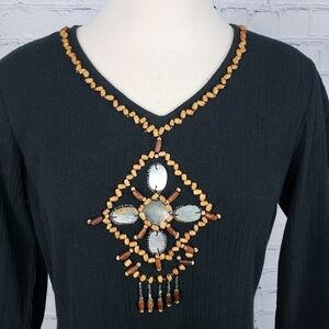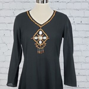 Anthony Design Womens Dress Size S Black Midi Boho Ethnic Hippie Grunge Art Deco