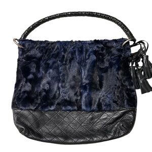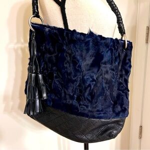 Anthony Luciano custom blue and black pony hair and leather hobo