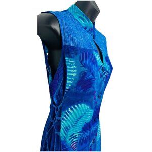 Anthony Mark Hawkins Dress A Line 10 Keyhole Sheath Short Blue Tropical Leaf EUC