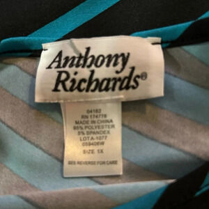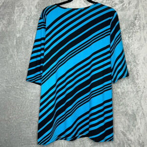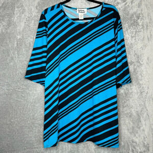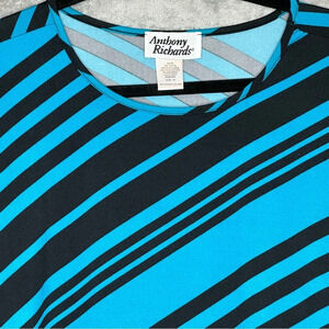 Anthony Richards 1X Shirt Top Blue Black Striped Short Sleeve Scoop Neck Stretch