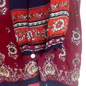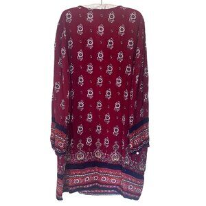 Anthony Richards Burgundy Floral Print Long Sleeve Boho Flowy Tunic Dress -18W