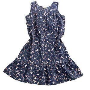 Embrace the beauty of nature and add a touch of Bohemian flair to your wardrobe with this stunning butterfly and star patterned muumuu house dress by Anthony Richards. The dress features a sleeveless design with a round neckline and a pullover closure for easy wear. The lightweight cotton/polyester blend material, coupled with the knee-length dress length, makes it perfect for summer and spring seasons. The dress comes with one front right pocket, ruffle accents, and is machine washable for easy care. This vintage dress in size L, fits regular size types and is perfect for casual occasions. The collarless dress is perfect for a cottagecore or farmcore theme, and the dress's features, including the accent pockets, make it a functional and stylish choice.