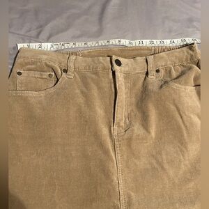 Corduroy skirt, tan, size 14. Elastic at back of waist. See photos for measurements. Worn once. Really nice skirt. I am also listing this skirt in black.