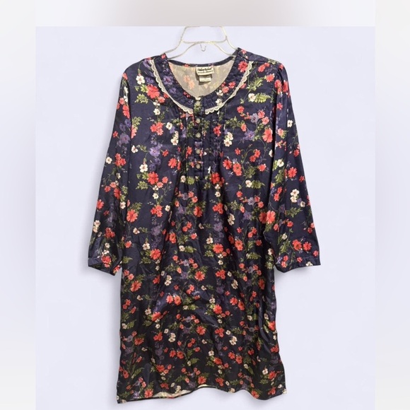 Charming nightwear with floral design. Features pink, green, and white flowers on a dark base.