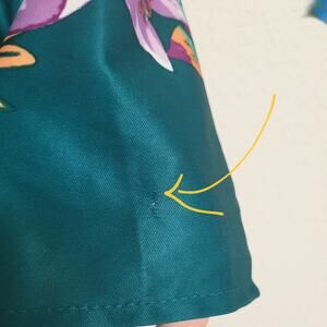 CONDITION: Good condition with flaw: There is a bit of pulled thread on the sleeve. See pic with arrow. Otherwise, no holes, tears, stains.