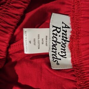 The Anthony Richards Pants for women in SP size are a stylish and comfortable choice for casual occasions. Made from cotton knit fabric, these red pants feature a high rise and straight leg fit, with an elastic waist for added comfort. With a flat front and pockets for convenience, these pants are perfect for summer, fall, and spring seasons. Easy to care for with machine washable properties, these pants are a versatile addition to any woman's wardrobe.