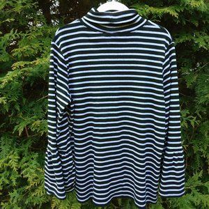Anthony Richards Stretchy Black/Gray Striped Bell-Sleeve TurtleneckTop